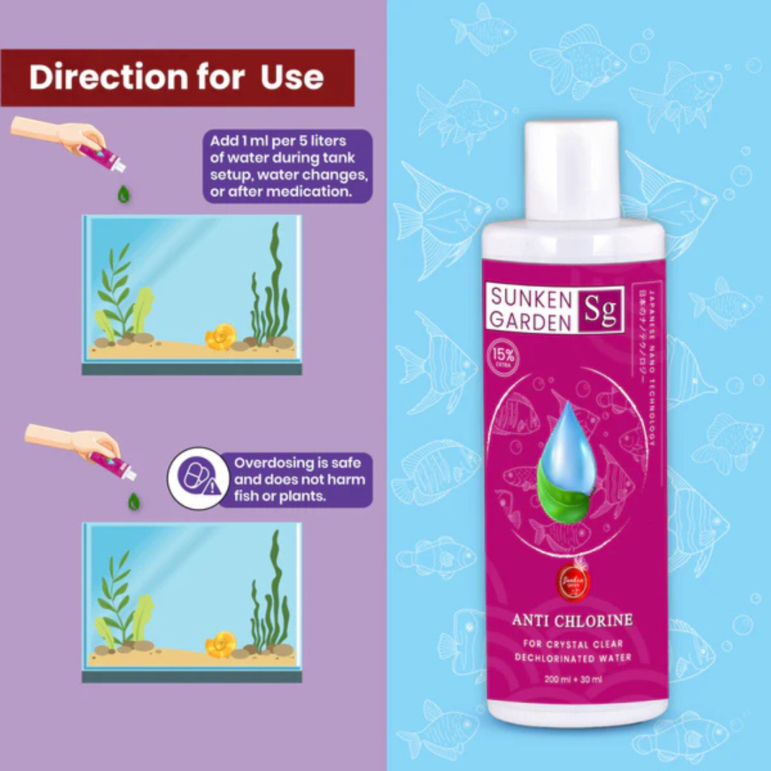 Sunken Garden Anti Chlorine 200ML + 30ML Free is your go-to solution for making aquarium water safe. This powerful product effectively removes harm
